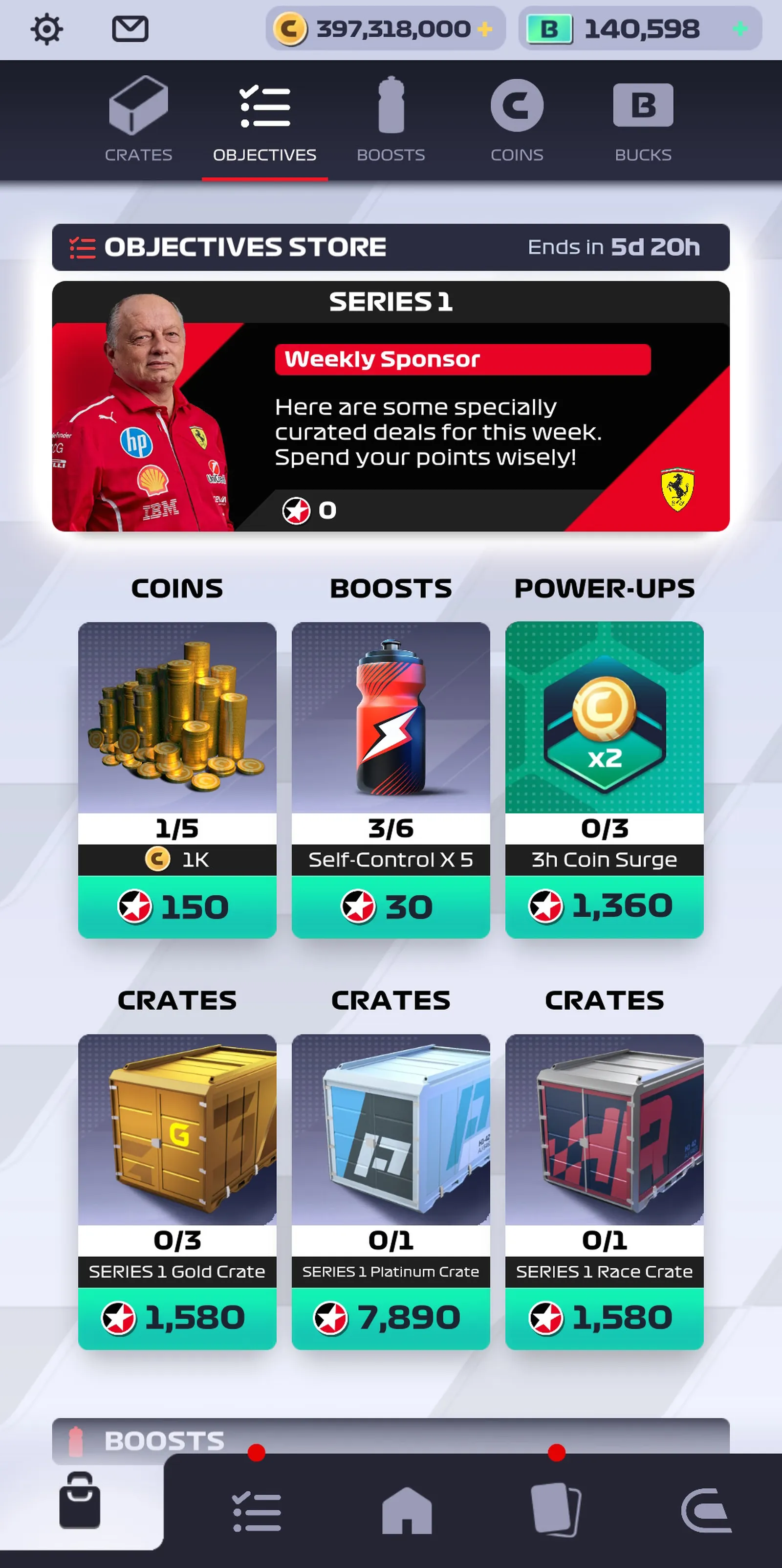 Each Objectives campaign will be uniquely themed with its own collection of varying Daily and Weekly tasks. These tasks will take Players across all aspects of F1 Clash as well as reward those who learn to master them. Completing a task will reward Players with Objective Points, valid for that particular campaign, which they can use to redeem in the dedicated Objectives Store.