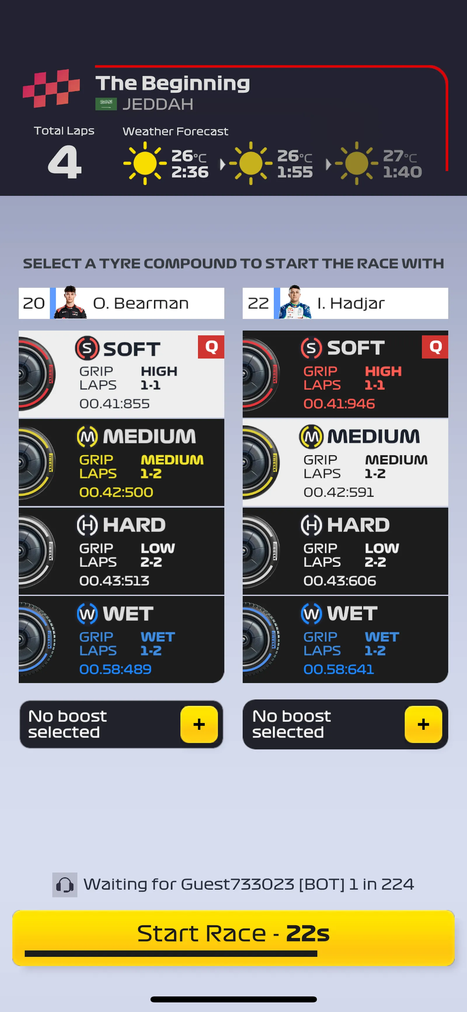 After the Qualifying lap when selecting your starting tyre compound for the race, you can also equip your Drivers with Boosts.