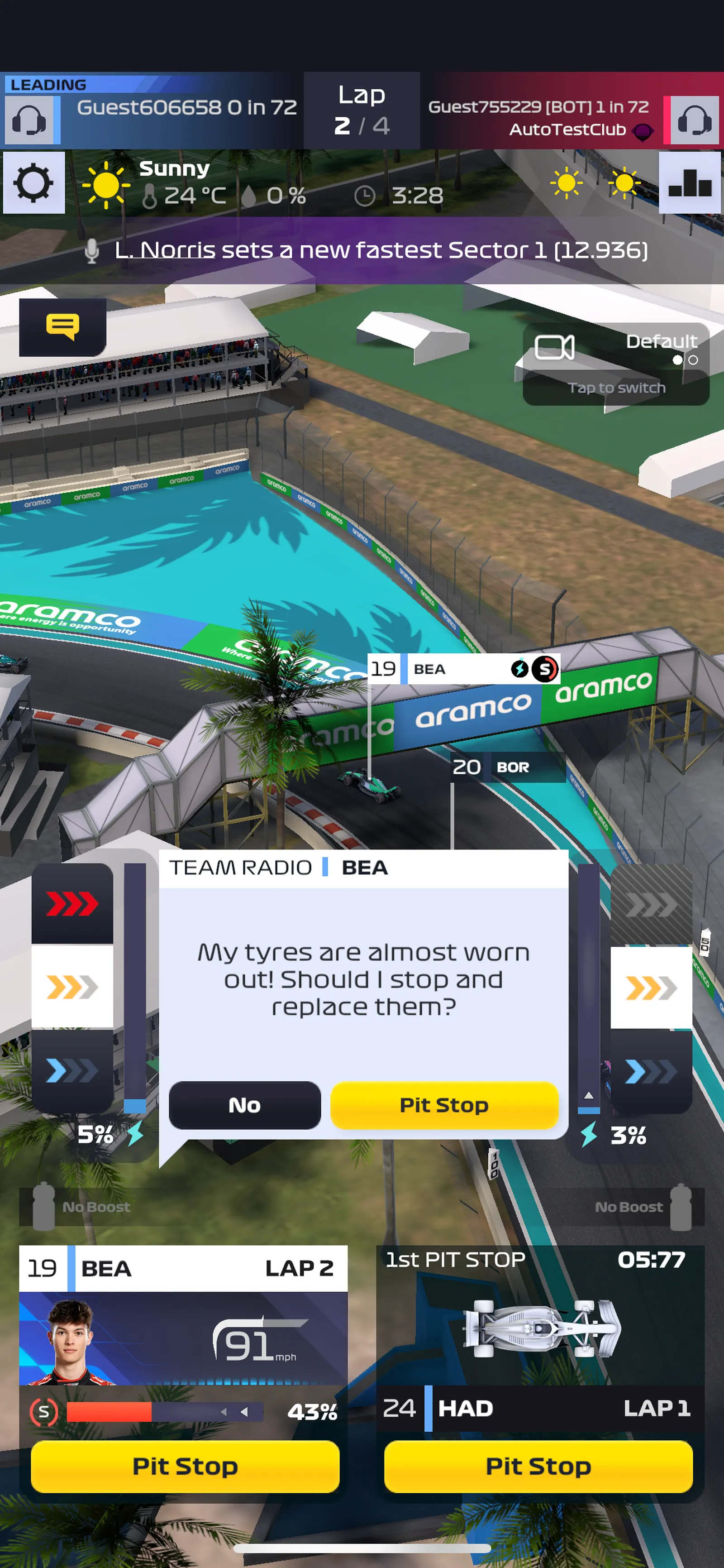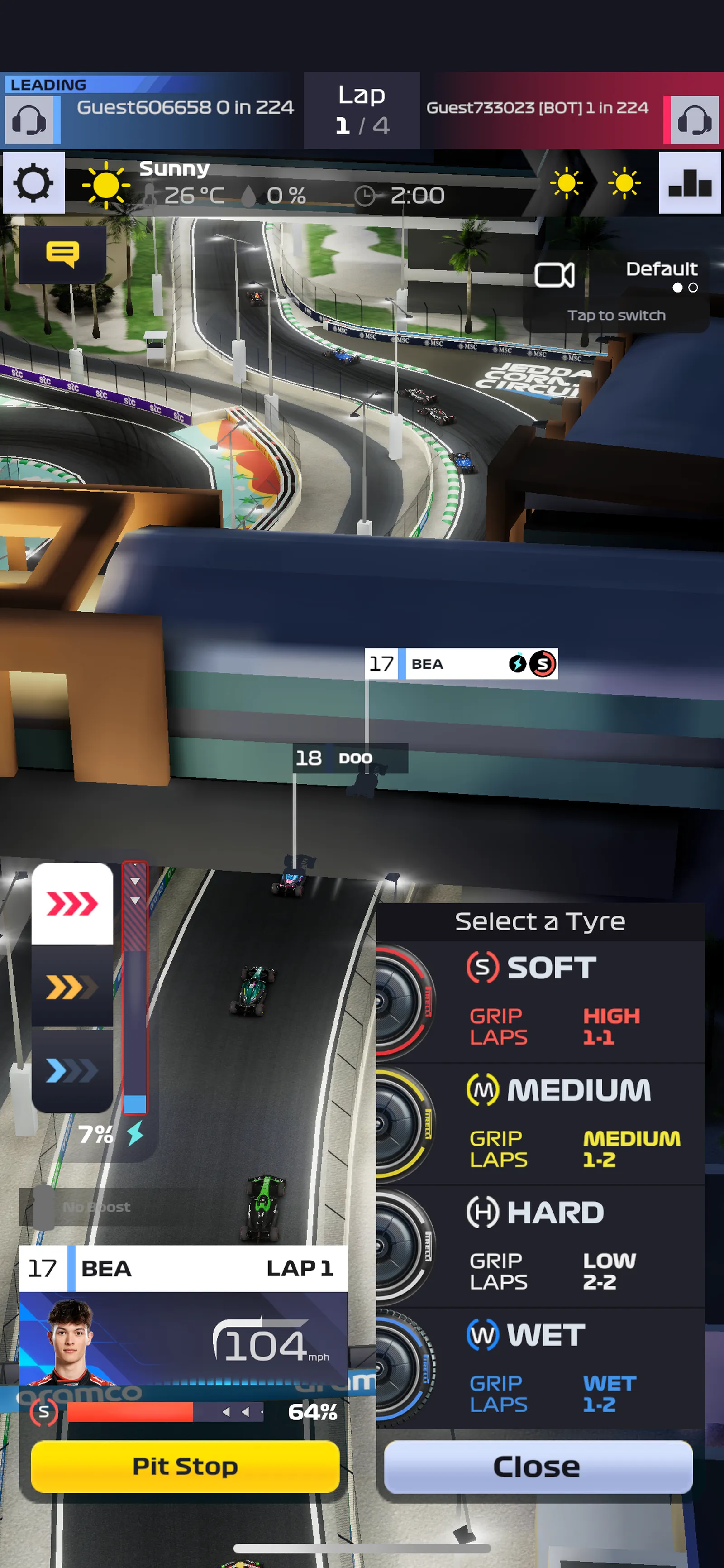 Switch between engine modes depending on your tyre wear and Power Unit bar to optimise your performance on track!