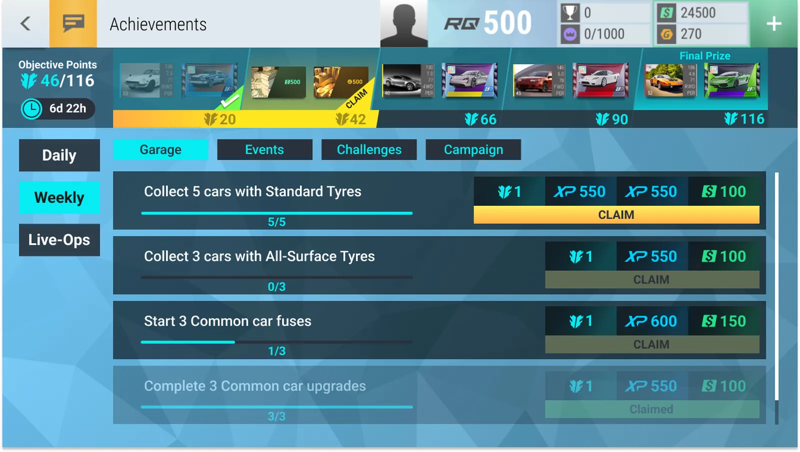 Small and big goals for you to unlock and earn rewards along the way. These will range from logging into the game and completing a match to longer seasonal objectives such as collecting 30 unique Collection Series cars.