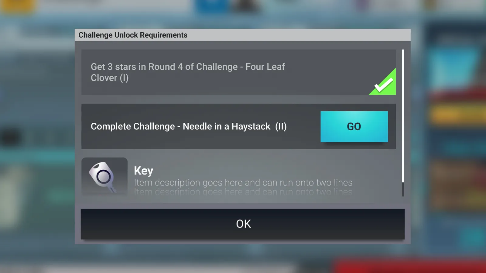 We are introducing the idea that challenges can unlock based on progression through other challenges, without the need for items to transition you between challenges, as you will have seen in the Collection Series. The UI for locked challenges can direct you to the required challenges.